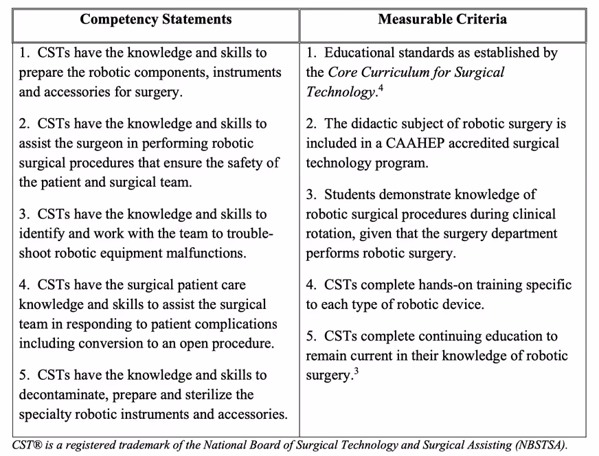 As a graduate of an accredited surgical technology program, the CST gained entry-level knowledge of robotic surgery.